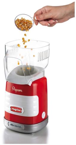 Ariete 00C295600ARAS popkorn öndürijisi, ýag goşmazdan bişirmäge mümkinçilik berýän gyzgyn howany ulanyp, çalt popkorn taýýarlamak üçin niýetlenendir.