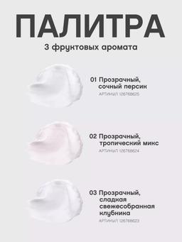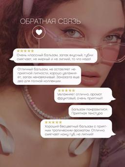 Aýratynlyklary Reňk: №02 ПРОЗРАЧНЫЙ, ТРОПИЧЕСКИЙ МИКС Göwrümi: 12ml Düşündiriş Balm Plaisir balzamlary bilen elmydama lezzet almaga sebäp bar. Parižiň tomusky baglary ýa-da Fransuz Polineziýanyň kenary - süýji miweli yslary sizi nirä alyp barar? Çig we papaýa tohumy ýaglary, E we C witaminleri bolan formula dodaklary ýumşadýar we iýmitlendirýär, olary tekiz we tertipli edýär. Näzik ereýän dokumasy derini gurşap alýar we çyglylygyň ýitmeginden goraýar. Balzam amatly miniatýura turbasynda gelýär - ýolda-da daş keşbiňize parlaklyk goşup bilersiňiz, şeýle hem kutikullaryňyzy we tirsek deriňizi ýumşadyp bilersiňiz. Ýygyndyda açyk miweli yslar bar: şireli şetdaly, täze saýlanan rawarag, tropiki garyndy. “Balm Plaisir” bilen islendik görnüşe we gözellik ideýasyna hemişe taýyn. Ulanyş tertibi Balzamy gündiz çalyň ýa-da bir gijeki dodak maskasy hökmünde ulanyň. Kesikleri, tirsekleri we beýleki gury, gödek ýerleri balzam bilen ýumşadyň.