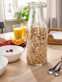 Çüýşe şekilli banka IKEA KORKEN gapakly, arassa aýna, 1.4 l