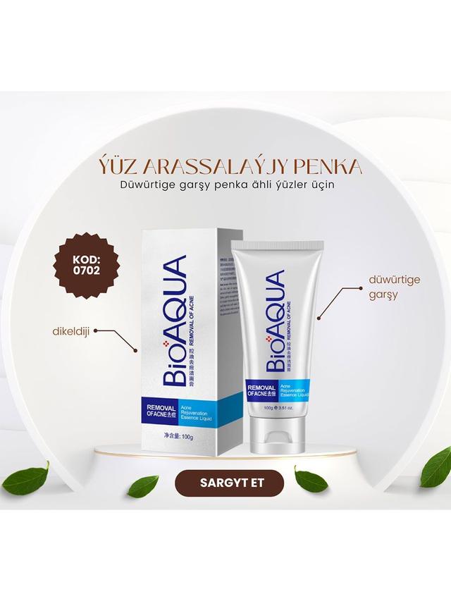 Bioaqua Pure Skin ýüzüňi düýpli arassalaýjy penka (100 ml) — bu akne (düwürtik), düwürjikler we deriniň artykmaç ýaglylygy bilen täsirli göreşmek üçin ýörite işlenip düzülen serişdedir. Ol derini ýuwmak pursadyndan başlap, bejeriş idegini üpjün edýär. Düýpli arassalama: Dykyz köpük (penka) gözenekleriň çuňlugyna aralaşyp, hapalary, artykmaç ýaglary (sebumy) we sowuklamany döredýän bakteriýalary aýyrýar. Bejerme we öňüni alma: Bar bolan düwürtikleri täsirli guradýar we täze örgünleriň döremeginiň öňüni alýar. Ýaglylygy gözegçilikde saklamak: Ýag mäzirleriniň işini kadalaşdyrýar, artykmaç ýalpyldyny aýyrýar we gözenekleri daraltmaga kömek edýär. Köşeşdiriji täsir: Deriniň gyzarmasyny we gyjyndyrmasyny aýyrýar, şikeslenen deriniň çalt bitmegine ýardam edýär. Näzik täsir: Düýpli arassalaýandygyna garamazdan, penka derini guraşdyrmaýar we onuň tebigy çyglylyk balansyny saklaýar.