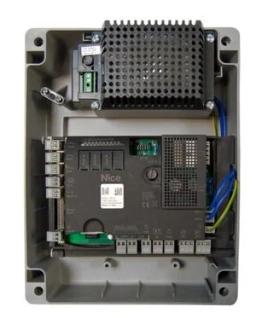 Nice brendiniň ganatly derwezeleri awtomatlaşdyrmak üçin elektron dolandyryş blogy. Bir ýa-da iki sany 220 V elektropriwody dolandyrmak üçin niýetlenen. Iýmitlenişi: 120/230 V~50/60 Gs. / Nominal kuwwaty: 900 Wt. Duýduryş çyrasyny birikdirmek üçin çykyş: 1 sany ýanyp-sönýän duýduryş beriji (120/230 V, 21 Wt lamba). Elektromekanyk ýapyjy çykyşy: 1 sany 12 V elektrogulp, maksimal ýük — 15 VA. / «Açyk derweze görkezijisi» çykyşy: 1 sany 24 V lamba, maksimal kuwwaty — 4 Wt (şonun ýaly-da kiçi releleri dolandyryp biler).