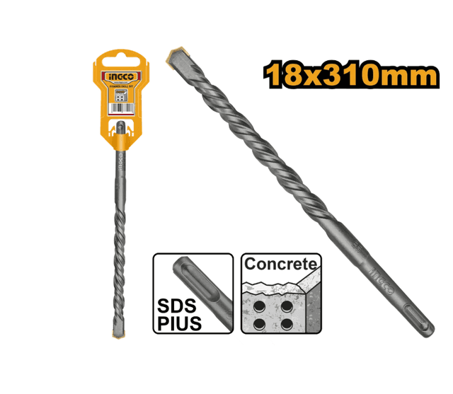 INGCO DBH1211803 INDUSTRIAL SDS-plus 18х310 mm beton üçin burgysy, beton, kerpiç, tebigy we emeli daşlarda deşik açmak üçin SDS-plus gurnamaly perforatorlar bilen bilelikde ulanylýar. Agramy: Brutto - 0,28 kg. Gaplanan harydyň ölçegleri: Uzynlygy - 37 sm, Ini - 4 sm, Boýy - 2 sm