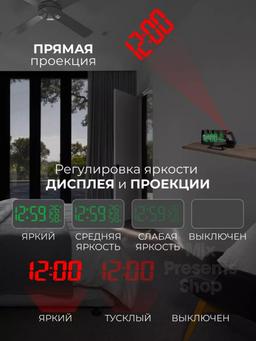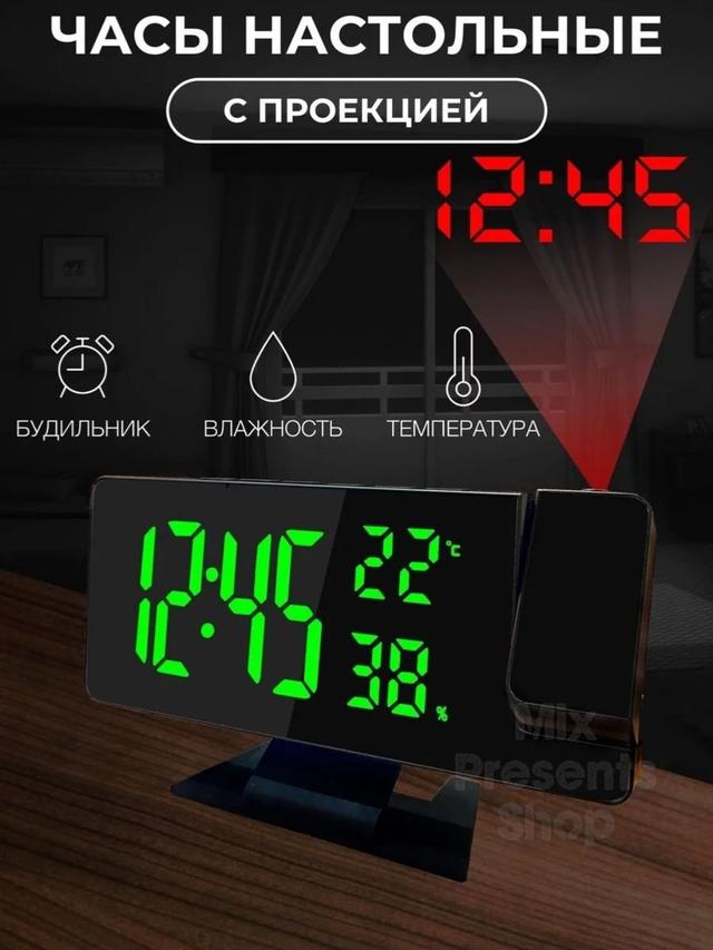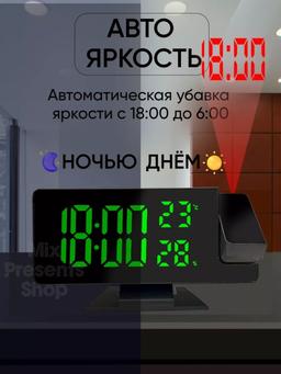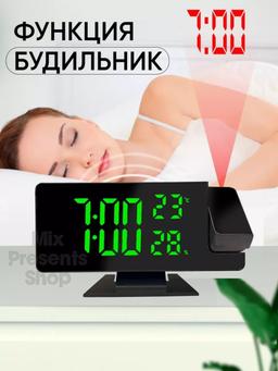 Часы настольные с проекцией LED (дата, температура, влажность) зеркальные DS-3718LW Удобство и современный дизайн в одном устройстве! Наши электронные часы, которые идеально впишутся в интерьер вашего дома или офиса, добавляя элегантности и удобства в повседневную жизнь. Особенности: Точный и четкий дисплей: Высококонтрастный LED-экран обеспечивает легко читаемое отображение времени, даже при слабом освещении. Многофункциональный будильник: Возможность установки будильника. Регулируемая яркость: Автоматическая или ручная настройка яркости дисплея для комфортного использования в любое время суток. Современный дизайн: Элегантный корпус и компактные размеры делают часы идеальным дополнением к любому интерьеру. Проекция позволяет направить время на потолок, стену и другое удобное для вас место. Проекцию можно также использовать вместо ночника. Работает только от кабеля USB (есть в комплекте) Батарейка предназначена для сохранения времени, если вы вдруг выключите часы от кабеля USB.