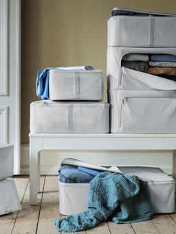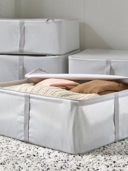 Чемодан для хранения IKEA HEMMAFIXARE ткань в полоску/белый/серый,44x51x19 cm