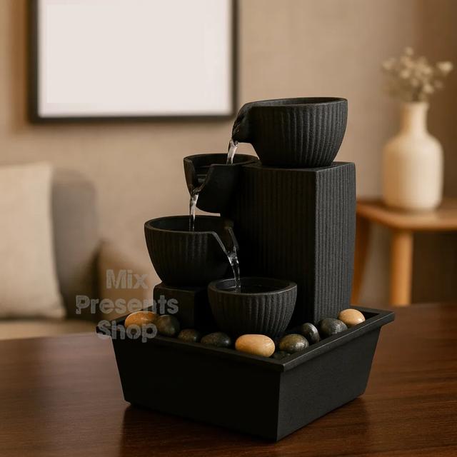Bezegli şarlawuk fontany LED yşyklandyryş bilen L011 USB kabeli bilen işleýär. Tebigy daşlar. Yşyklandyryş.
