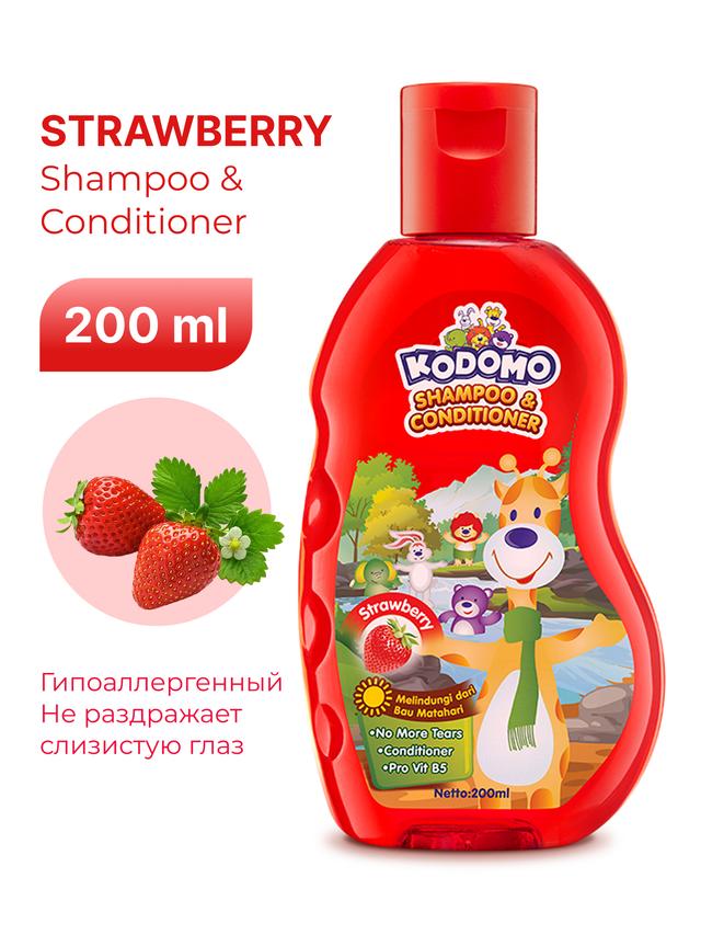 Süýji tudana ysy bolan Kodomo Strawberry çaga şampuny, suwa düşmegi şadyýan hezilge öwürer. Onuň gözleri ýaşartmaýan näzik formulasy, çaganyň ýumşak saçlaryny we kelle derisini dözündirme döretmezden aýawly arassalaýar. Şampun çyglandyryjy komponentler we witaminler bilen baýlaşdyrylyp, saçlary ýumşak, lowurdawuk edýär we olaryň daralmasyny ýeňilleşdirýär. Deňagramly pH derejesi we howpsuz düzümi, iň kiçi ýaşlardan başlap, her gün ulanmak üçin örän amatlydyr.