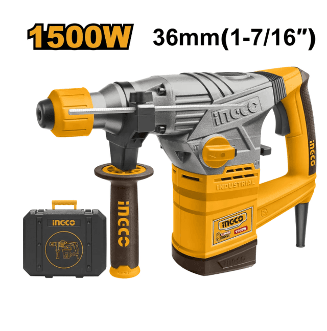 SDS-Plus INGCO RH15008 INDUSTRIAL perforatory gurluşyk, gurnama we hojalyk abatlaýyş işlerinde, tebigy daşda, betonda, kerpiçde deşik açmak üçin ulanylýar. Şeýle hem agaçda, metalda, keramikada we sintetik materiallarda deşik açmak üçin amatlydyr. Döwrebap dizaýny netijesinde tutawaçlaryň ýumşak rezin örtükleri bar, olar titremäni azaldýar, guralyň elden sypmagynyň öňüni alýar we elleriň ýadamasyny peseldýär. Durnukly güýji saklaýjy ulgamyň kömegi bilen, hatda uly agram düşende-de guralyň güýji peselmeýär we bellenen derejede galýar. Bu model ýeňil agramy we ýokary güýji özünde jemleýär. Reduktoryň metal korpusy ýylylygy netijeli çykarýar we mehaniki zeperlerden goraýar, bu bolsa guralyň uzak möhletleýin hyzmat etmegini üpjün edýär. Guralyň görnüşi: SDS-plus perforatory Gatlak: INDUSTRIAL Model: INGCO RH15008 Dwigateliň görnüşi: Çotgaly Güýji: 1500 Wt Naprýajeniýe: 220-240V~50/60 Gs Maksimal urgy güýji: 5,0 J Şpindeliň aýlaw ýygylygy: 0-750 aýl/min Urgy ýygylygy: 0-3000 urg/min Buraw bilen maksimal burawlama diametri (beton): 36 mm Buraw bilen maksimal burawlama diametri (kerpiç): 36 mm Maksimal burawlama diametri (metal): 13 mm Maksimal burawlama diametri (agaç): 40 mm Koronka bilen maksimal burawlama diametri (kerpiç): 65 mm Koronka bilen maksimal burawlama diametri (beton): 65 mm Tertipleriň sany: 3 tertip