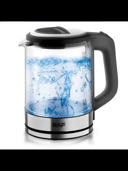 RAF R.7201G Elektrikli çäýnek (2.0 l, 1500 W) RAF R.7201G elektrikli çäýnegi özüniň nepis dizaýny we ýokary netijeliligi bilen aşhanagyz üçin ajaýyp saýlaw bolar. Çäýnegiň korpusy ýokary hilli, gyzgyna çydamly borosilikat aýnasyndan ýasalyp, suwuň tebigy tagamyny saklaýar we gaýnaýyş prosesine syn etmäge mümkinçilik berýär. Esasy artykmaçlyklary: LED yşyklandyryş: Işläp başlanda ýanýan ýumşak yşyk aşhanada özboluşly ýakymly gurşaw döredýär we işleýändigini görkezýär. Howpsuzlyk: Suw gaýnan wagty awtomatiki öçme ulgamy we suwsuz ýanmakdan gorag funksiýasy bilen enjamlaşdyrylandyr. Çalt gyzdyrmak: 1500 W kuwwaty bilen 2 litr suwy gysga wagtyň içinde gaýnadyp berýär. Ulanyş aňsatlygy: 360 gradus aýlanýan esasy (baza) we amatly tutawajy çäýnegi ulanmagy has-da ýeňilleşdirýär. Tehniki aýratynlyklary: Göwrümi: 2.0 litr Kuwwaty: 1500 W Korpusyň materialy: Borosilikat aýnasy + ýokary hilli plastik Gyzdyryjy elementi: Ýapyk (diskowoý) Indikasiýa: LED yşykly