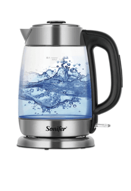 Sonifer SF-2134 elektrik çaýnegi — bu sypaýy stiliň we döwrebap howpsuzlyk tehnologiýalarynyň utgaşmasydyr. Enjamyň korpusy ýokary hilli taplanan çüýşeden ýasalandyr, bu bolsa suwuň gaýnaýşyna gözegçilik etmäge we suwuň derejesini takyk bilmäge mümkinçilik berýär. Model içki ýagty yşyklandyryş we ygtybarly komponentler bilen enjamlaşdyrylan bolup, gündelik ulanmakda uzak ömürliligi we amatlylygy üpjün edýär. Enjamyň käbir aýratynlyklary: Gyzgyna çydamly çüýşeden ýasalan dury kolba suwuň tebigy häsiýetlerini saklaýar we ýat yslary bölüp çykarmaýar. Içki swetodiod yşyklandyryşy enjamyň işleýiş indikatory bolup hyzmat edýär we owadan wizual täsir döredýär. 1500 Wt güýjündäki ýapyk diskly gyzdyryjy element çalt gaýnamagy we arassalamagyň ýeňil bolmagyny üpjün edýär. Howpsuzlyk ulgamy suw gaýnanda awtomatiki öçmegi we suwsuz gyzmakdan goragy öz içine alýar. Ergonomik tutawaç we gapagy açýan düwme çaýnegi ulanmagy gaty amatly edýär. 360 gradus aýlanýan esas enjama islendik tarapdan aňsat el ýetirmäge mümkinçilik berýär. Burundaky aýrylýan süzgüç hapa bölejiklerini saklap, içginiň arassalygyny üpjün edýär. Esasyň aşaky bölegindäki ýörite bölüm elektrik şnuruny amatly saklamak üçin niýetlenendir.
