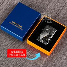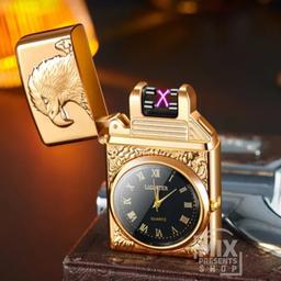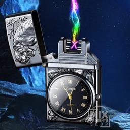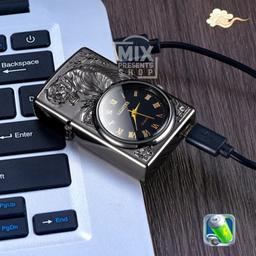 Электронная зажигалка ARC электроимпульсная с кварцевыми часами 2 в 1 (Орёл, тигр, дракон)