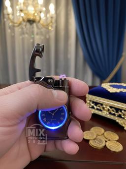 Электронная зажигалка ARC электроимпульсная с кварцевыми часами 2 в 1