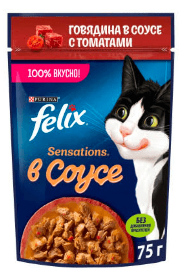 Felix влажный корм для кошек говядина с томатами в соусе75 гр