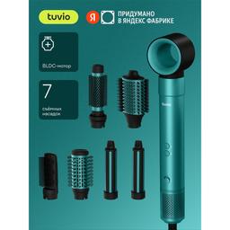 Фен - щетка с ионизацией Tuvio HBI1413 , 7 насадок , зеленый
