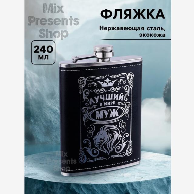Фляжка "Лучший муж" нержавеющая сталь 240 мл (покрытие ЭКО кожа)