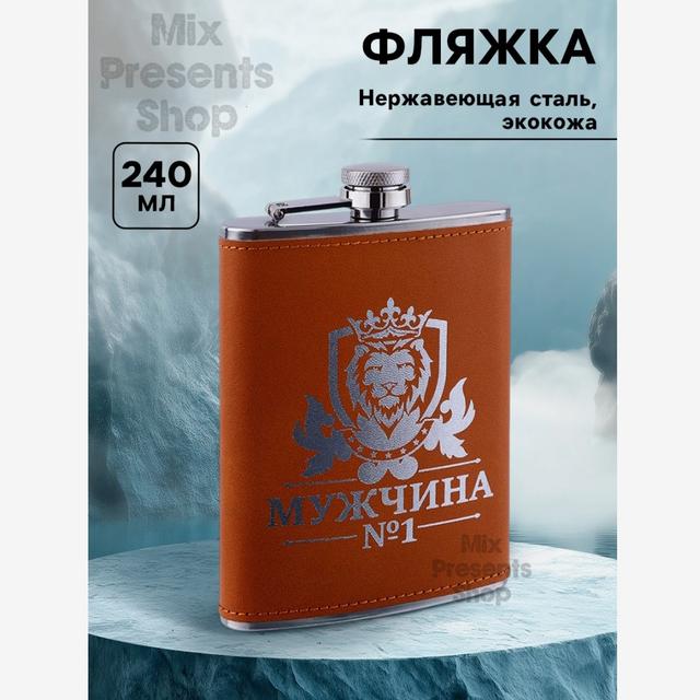 Фляжка "Мужчина номер 1" нержавеющая сталь 240 мл (покрытие ЭКО кожа)