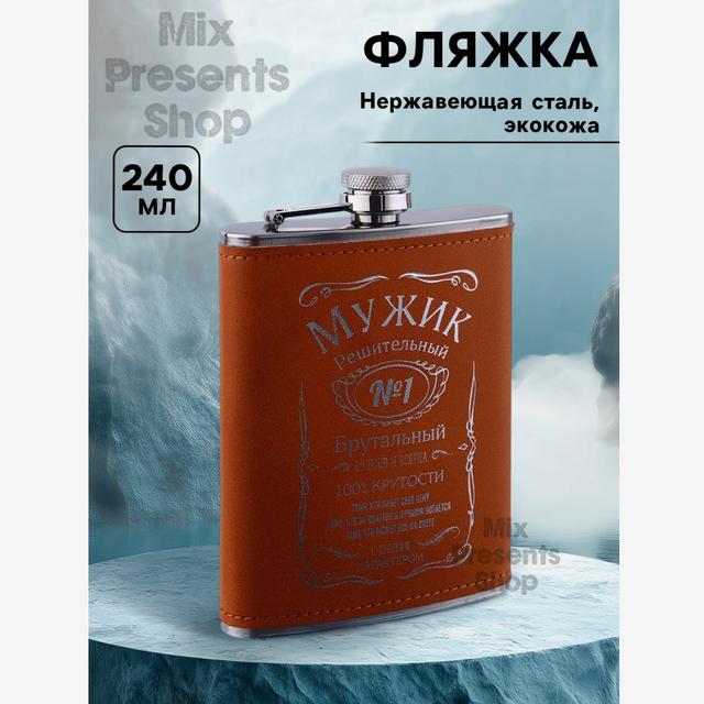 Фляжка "Мужик" нержавеющая сталь 240 мл (покрытие ЭКО кожа)