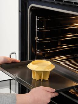 Sary reňkli silikon materialdan ýasalan bu göwher şekilli bişirilen galyp çydamly we aňsat arassalanýar. Torta ýa-da beýleki bişirilen önümler üçin ulanylyp bilner.