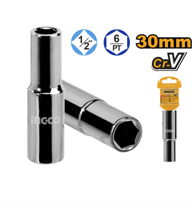 INGCO HHAST12303L INDUSTRIAL 1/2" 30 mm uzaldylan alty burçly torsewoý golowkasy, rezbaly birikmeleri gurnamak ýa-da sökmek üçin priwodlar we uzaldyjylar bilen bilelikde ulanylýar. Golowkanyň ölçegi: 30 mm Hwostowigi: 1/2" Materialy — nikel bilen örtülen hrom-wanadiý polady (50BV30) Agramy: Brutto - 0,41 kg. Gaplanan harydyň ölçegleri: Uzynlygy - 15 sm, Ini - 5 sm, Boýy - 3 sm