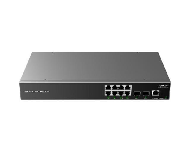Grandstream GWN7801 dolandyrylýan Layer 2+ tor açary bolup, kiçi we orta kärhanalara ulalýan, ygtybarly, ýokary öndürijilikli we akylly işewürlik torlaryny gurmaga mümkinçilik berýär. Modeliň käbir aýratynlyklary: Portlar: 8 Gigabit Ethernet we 2 Gigabit SFP. Protokol goldawy: IPv4, IPv6, IEEE 802.3, IEEE 802.3i we başgalar. Prosessor: RTL8380M. Oryat: 1GB DDR3 / 32MB fleş. Giriş güýji: 100–240VAC, 50 / 60Hz. Çykyş güýji: 12VDC 1.5A (<18W). Goragdan goramak: wyklýuçatel üçin 6kV, tor portlary üçin 4kV umumy re modeim. Paket buferi: 4.1MB. Ölçegleri: 330mm (L) x 175mm (W) x 44mm (H). Agramy: 1.8 kg. Käbir aýratynlyklar: Trafik segmentasiýasy üçin VLAN goldawy, tor trafigini ileri tutmak üçin QoS, toruň işleýşini optimizirlemek üçin IGMP gözlemek we ş.m.