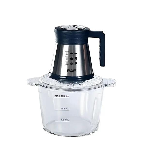 RAF R.7708 Elektrikli aşhana dograýjysy (çoper) – 1000 Wt, 3 l RAF R.7708 aşhana kombaýny — bu siziň aşhananyz üçin dograýjy, et üweýji we blender wezipelerini ýerine ýetirýän güýçli we ygtybarly enjamdyr. 1000 Wt güýjündäki motory we poslamaýan polatdan ýasalan ýiti pyçaklary saýasynda, bu enjam eti, gök önümleri, hozy we hatda buzy birnäçe sekundyň içinde dograp bilýär. Esasy artykmaçlyklary: Giň göwrümli gap: 3 litrlik gap ýokary hilli poslamaýan polatdan ýasalandyr — ol çydamlydyr, ys saklamaýar we aňsat arassalanýar. Ýokary öndürijilik: Güýçli motor enjamyň doly ýüklenen ýagdaýynda-da netijeli işlemegini üpjün edýär. Iki tizlikli dolandyryş: Önümleriň görnüşine görä dogramagyň tizligini sazlap bilersiňiz. Howpsuzlyk: Taýmaz düýbi we gyzmadan gorag ulgamy enjamyň durnukly we uzak wagtlap hyzmat etmegini kepillendirýär. Dizayn: Polat reňkli we döwrebap dizaýny islendik aşhana interýerine kybapdaş geler. Tehniki aýratynlyklary: Güýji: 1000 Wt Gabynyň materialy: Poslamaýan polat (Neržaweýka) Göwrümi: 3 litr Pyçaklaryň sany: 4 (iki gatlakly) Güýç: 220-240 V