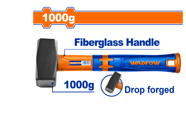 Agramy: 1000 g Taplanan çekiç Termiki işlenen, 45 # uglerodly polat Üýtgeşik dizaýnly steklowolno (aýna süýümli) tutawaç