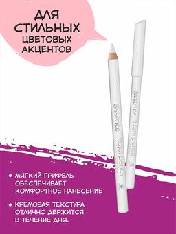 Aýratynlyklary Reňk: №04 WHITE Göwrümi: 1gr Düşündiriş Essence Kajal Göz Galam ýumşak gurluşa eýe we islendik ini tekiz çyzyklar bilen ulanmak aňsat. Göz gabynyň reňki dykyz we gaty pigmentli çykýar. Kaýal daşky gabagyň derisinde we göz konturynyň duýgur gyjyndyrmasyny döretmeýär we uzak dowamlylygy bar. Ulanyş tertibi Gözüň görnüşine baglylykda kontur çyzyň. Gözleriň konturyny takyk görkezmek üçin bir üznüksiz çyzyk çekmäň, gözüň içki burçundan daşyna geçip, yzly-yzyna birnäçe gezek uruň. Dumanly göz effekti üçin garyşdyryň.