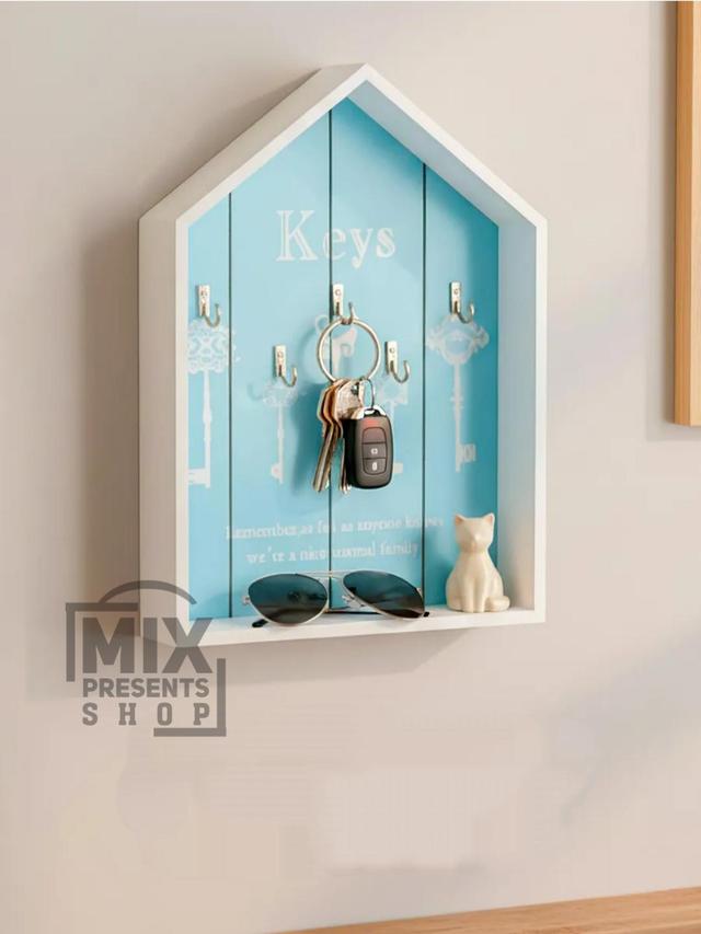 Açyk görnüşli "Keys" jaý şekilli açar saklaýjy, 5 sany ilgäkli (31.5 x 24.5 x 5 sm) Material: MDF