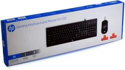 HP KM100 Gaming Combo — bu oýunlarda iň ýokary takyklygy üpjün etmek üçin döredilen, başlangyç derejeli simli oýun (gamer) toplumydyr. Toplum suwa dözümli klawiaturadan we yşyklandyrylýan ýokary takyklykly optiki syçanjykdan ybaratdyr. Baglanyşyk görnüşi: Simli (USB). Oýun pursatynda bökdençsiz we dessine jogap beriş tizligini üpjün edýär. Oýun klawiaturasy: Köp sanly basyşlara çydamly membranaly düwmeler bilen enjamlaşdyrylan. Ergonomiki dizaýny we tötänleýin dökülen suwuklyklardan goragy bardyr. Oýun syçanjygy: Sazlanyp bilinýän DPI durulygyndaky optiki sensor, bu bolsa oýun wagtynda kursoryň tizligini çalt üýtgetmäge mümkinçilik berýär. Owadan LED yşyklandyryşy bar. Dözümlilik: Düwmeler millionlarça basyşa çydamly, kabeli bolsa epilmekden goranmak üçin berkidilen gurluşlydyr. Ergonomika: Klawiaturanyň we syçanjygyň oňaýly görnüşi uzak wagtlap oýun oýnan wagtyňyz eliňiziň ýadamasyny azaldýar. Elipbiý (Layout): RU/ENG (Rus we iňlis elipbiýli).