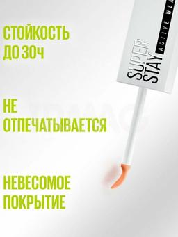 Aýratynlyklary Reňk: №15 LIGHT Göwrümi: 10ml Düşündiriş “SuperStay Active Wear” konsiler. Agramsyz "dem alýan" örtük we 30 sagada çenli çydamlylyk! Agramsyz reňkli pigmentler doly örtügi we mat görnüşini üpjün edýär. “Active Wear” tehnologiýasynyň kömegi bilen konsiler belliksiz, suwa, derine çydamly we 30 sagada çenli dowam edýär! Komedogen däl (gözenekleri ýapmaýar). Täze “Superstay Active Wear Concealer” bilen tapawudy ýok ediň! 6 reňkde. Deriniň ähli görnüşleri üçin. Ulanyş tertibi Aplikator ulanyp, kemçiliklere az mukdarda konsileri çalyň we ýuwaşlyk bilen garyşdyryň.