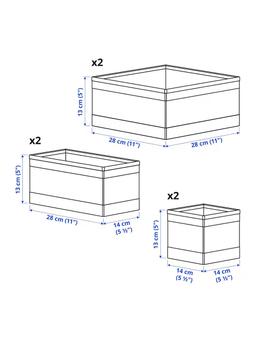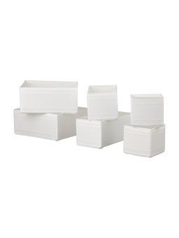 SKUBB 6-lyk gutujyk toplumy bilen şkafyňyzy we çekmejeleriňizi tertipläň. Dürli ölçegler içki eşikleri, joraplar we galstuklar ýaly zatlary bölmek üçin amatly. Ulanmaýan wagtyňyzda tekiz ýygylyp bilinýär. Ulanmaly Ýerleri: Şkaflaryň çekmejeleri, komodlar. Tehniki Aýratynlyklary Reňki: Ak Materialy: 100% Poliester. Ölçegleri: 4 dürli ölçegde 6 gutujyk. Aýratynlyklary: 6 gutujygyň toplumy, ýygylýan, howa çalşygy gowy.