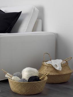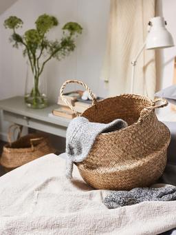Bu örülen sebediň özboluşly görnüşi bar, sebäbi bu sebet elde ýasalan. Bu sebedi nädip ulanmalydygyny öziňiz saýlap bilersiňiz: tutawaçlary ulanyp ony tersine öwüriň ýa-da aşagyny görmek üçin aşak öwüriň. Material Deňiz ösümlikleri, arassa lak Boýy: 32 sm Diametri: 25 sm Min. beýikligi: 18 sm