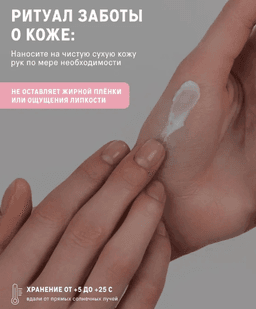 Güleýän sakuranyň ysy bolan ýeňil, çalt siňýän krem el derisine ýuwaşlyk bilen ideg edýär, çuňňur çyglandyryş, iýmitlendiriş we dikeldiş bilen üpjün edýär. Kremiň lamellýar gurluşy (lamellar structure) oňa derrew siňmäge mümkinçilik berýär, ýelmeşek gatlagy galdyrmaýar, we stilde ýasalan alýumin tüpükli amatly görnüşi ony el hossarlygynda (ideginde) aýrylmaz ýoldaşa öwürýär. — çalt siňip, çyglandyrýar — deriniň hilini gowulandyrýar — atyr ysy (parfýumly ysy) Ysy (Aromaty): Narpyz (Wiýna) Göwrümi: 65 ml