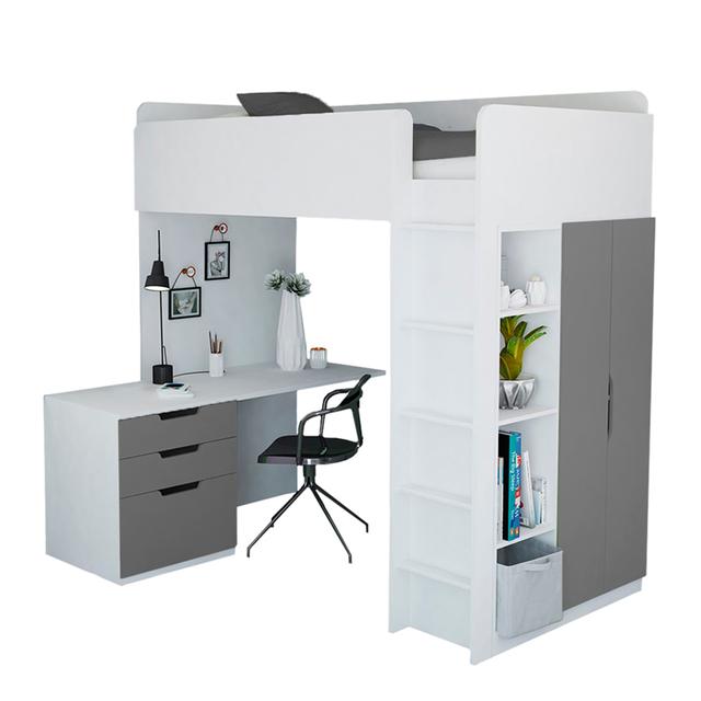 Teremok çerdak-kereweti Teremok çerdak-kereweti — çagalar otagynda ýerleri netijeli ulanmak we funksional dynç alyş zolagyny döretmek üçin ajaýyp çözgütdir. Bu toplum özünde oňaýly ýatylýan ýeri, giň iş stoluny, şkaf we tumbany jemleýär. Berkitme basgançaklary we ýörite gorag gapdallary çaganyň uky wagtynda we hereket edende doly howpsuzlygyny üpjün edýär. Ýakymly reňkleri islendik interýer bilen sazlaşykly utgaşýar. Toplumyň aýratynlyklary: Material: Ýokary hilli LDSP. Howpsuzlyk: Belent gorag germeçleri we durnukly basgançak. Funksionallyk: Içine gurnalan şkaf, ýazuw stoly we tumba. Bellik: Matras toplumyň içine girmeýär. Ölçegleri: Toplumyň umumy ölçegi (IxBxÇ): 205х200х108 sm. Ýatylýan ýeri (IxÇ): 90х190 sm. Şkaf (IxBxÇ): 60х150х47 sm. Iş stoly (IxBxÇ): 150х75х60 sm. Tumba (IxBxÇ): 50х73х58 sm. Basgançak (IxBxÇ): 40х190х9 sm. Eltip bermek we gurnamak: Mugt.