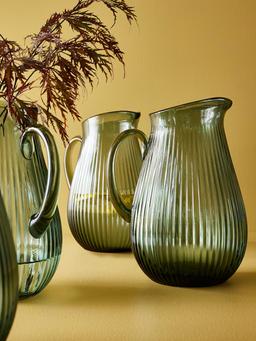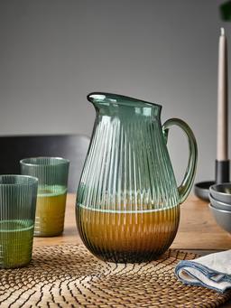 Bu 2 litr göwrümli, nagyşly we goýy çal-ýaşyl reňkli grafin aýnadan ýasalan we sowuk içgileri hyzmat etmek üçin amatlydyr. Aýratyn dizaýny we giň agzy bilen içgileri aňsat guýmaga mümkinçilik berýär. Stoluň üstünde ýa-da piknikde ulanmak üçin amatly. Aýna materiali içgileriň tebigy reňkini görkezýär, arassalamak aňsatdyr we uzak wagtlap ulanylýar.