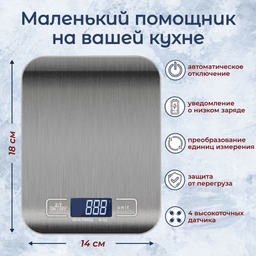 Ýokary takyklykly elektron aşhana terezileri her bir öý hojalykçysy üçin möhüm zatdyr. Bu simsiz, ýokary takyklykly aşhana terezileri miweleri, miweleri, gök önümleri, süýjülikleri, eti, şekeri, uny, greçkany, tüwini we beýleki köpçülikleýin önümleri takyk ölçemek üçin ajaýypdyr. Uly LCD displeý we TARE funksiýasy (nol ýa-da tare funksiýasy), şeýle hem stilli polat ýüzi bilen enjamlaşdyrylan bu tereziler islendik aşhana bezegine ajaýyp gabat geler. Iň ýokary agramy 5000 gram (5 kg) bolan bu elektron aşhana terezileri möhüm aşhana enjamydyr. TARE funksiýasy iýmitleri ölçeýän wagtyňyz gap-gaçlaryň agramyny göz öňünde tutmagyň zerurlygyny aradan aýyrýar. Bu elektron tereziler ykjam, şonuň üçin olar aşhana enjamlaryňyzy saklaýan şkafyňyza sygýar. Bu süýji tort terezileri ajaýyp enjamdyr. Iki AAA batareýa goşulandyr. Bu kiçi elektron öý terezileri gramm, kilogram, unsiýa, ml we funt ýaly dürli ölçeg birliklerini görkezip bilýär. Aşhana terezi ulanylmaýan wagty awtomatiki usulda öçýär. Iň takyk netijeler üçin aşhana terezisini tekiz, gorizontal ýüze goýuň. Olar polatdan ýasalan terezilerden tapawutlylykda iýmitleri ölçemek, suwuklyklary ölçemek, bişirmek, bişirmek we iýmitleri böleklere bölmek üçin ajaýypdyr. Olar arkadan ýagtylandyrylan ekrana eýe we rus dilinde görkezmeleri öz içine alýar. Bu elektron enjam, gapjygyny hasaba almazdan hem, suw ýa-da süýt ýaly suwuklyklaryň möçberini ölçäp bilýär. Terezi 3 minut hereketsiz durandan soň öçýär, bu bolsa batareýanyň ömrüni tygşytlaýar we batareýalary çalyşmagyň zerurlygyny azaldýar. Bir jübüt uzak wagtlap işleýär. Şeýle-de bolsa, zerurlyk ýüze çyksa, hatda çaga hem batareýalary çalyşyp biler. Terezisiniň aşagyndaky gapagy açyň, ulanylan batareýany çykaryň we ony täzesi bilen çalyşyň. Iş ýüzünde gorag plýonkasy bilen gelýär, ony ilkinji gezek ulanmazdan öň aýyrmaly.