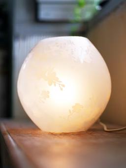 Bu ak stol çyrasy, 18 sm beýiklikde, ülje gülli dizaýna eýe. Ýumşak ýagtylyk berýär we iş ýeriniň ýa-da otagyň bezegi üçin amatlydyr.