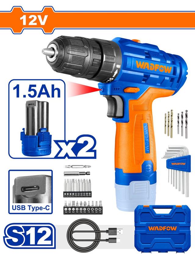 Литий-ионная дрель 12 В 20 Нм 1,5 Ач x 2 шт. аккумулятор, Type-C WCDS525