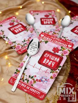 Ложка сувенирная "Лучший врач" на открытке (чайная)