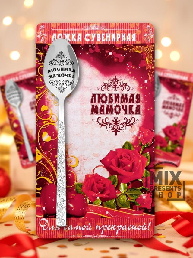 Ложка сувенирная "Любимая мамочка" на открытке (чайная)