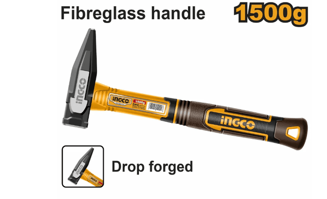 Agramy: 1500 gr Innowasion döwülen çekiç kellesi Termiki işlenilen, 45# uglerodly polat Oňaýly tutuş üçin berk, üç reňkli fiberglass (steklowolokno) tutawaç Etiketka bilen gaplanan