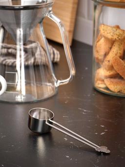Kofe üçin poslamaýan polatdan ýasalan ölçäýji çemçe. Takyk ölçeg bermek üçin amatly we çydamly gural.