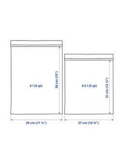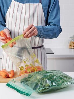 Bu nagyşly, ýaşyl reňkli köp gezek ulanylýan paketler 6 l we 4,5 l göwrümli bolup, azyk önümlerini ýa-da beýleki ownuk zatlary saklamak üçin amatlydyr. Düzümindäki çydamly material sebäpli birnäçe gezek ulanyp bolýar we doňduryjyda saklamaga hem laýykdyr.