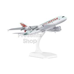 Uçaryň modeli "Qatar" Airbus-380 (metal) Masştab: 1: 400 Ölçegi: 20 sm. Material: guýma metal, plastik. Sowgat gutusynda.