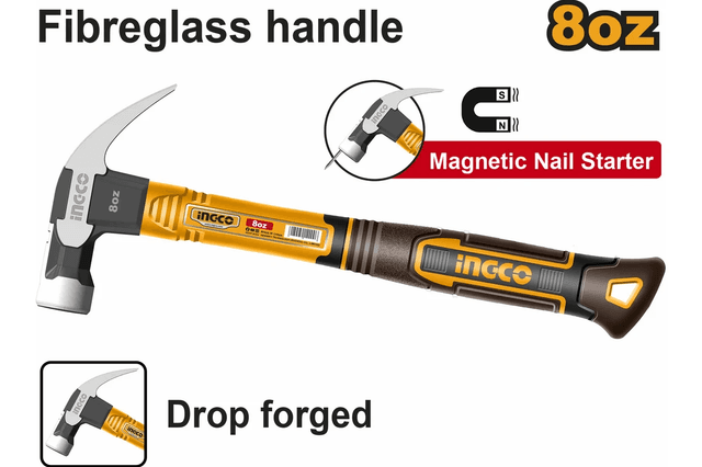 Agramy: 8 unsiýa/220 gr Magnitli çüý tutujy funksiýasy Innowasion döwülen çekiç kellesi Çekiç kellesi döwülen (kowka) Termiki işlenilen, 45# uglerodly polat Fiberglass (steklowolokno) tutawajynyň üýtgeşik dizaýny Etiketka bilen gaplanan