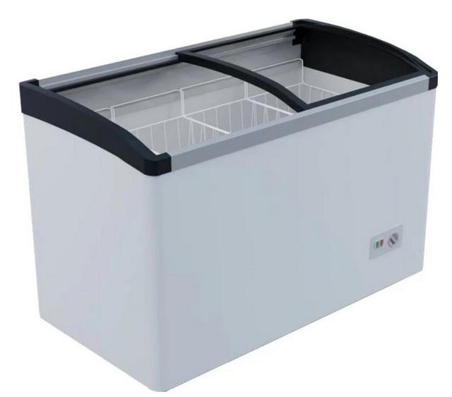 400 litr peýdaly göwrüm, elektromexaniki dolandyryş, el bilen razmorazhiwaniýe, 25 kg/gün morozilýän kuwwat, 18 sagat awtonom sowadyjy, R404A sowadyjy serişde, T klimat klasysy, 43 dB ses derejesi, inwertorsiz kompressor, aýratynlyklary: supermorozilka, çalt morozilka, üýtgedilýän gapyklar, işlýän temperatura aralygy -14°C den -32°C çenli, A+ energiýa sarp ediş klassy, 85 sm belentlik, 132 sm ini, 72 sm çuňluk