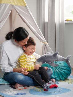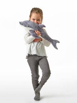 Bu 50 sm uzynlykda çal delfin şekilli ýumşak oýunjak, çagalaryň gujaklap oýnamagy we ýatmagy üçin aýratyn ýumşak we mylaýym materialdan taýýarlanypdyr. Oýunjak diňe bir lezzetli oýun üçin däl, eýsem rahatlyk berýän ýoldaş hökmünde hem hyzmat edýär.