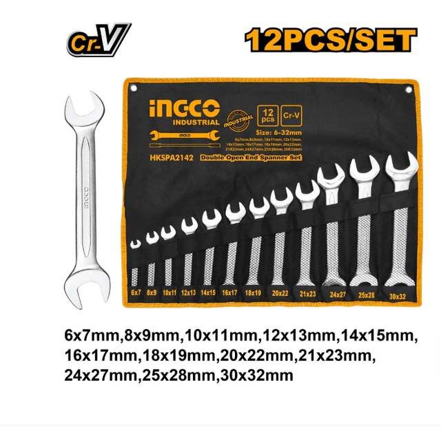 "Goşa agyzly (rojlowoý) açarlar toplumy, 12 sany" Ölçegi: 6-32 mm 6x7 mm, 8x9 mm, 10x11 mm, 12x13 mm, 14x15 mm, 16x17 mm, 18x19 mm, 20x22 mm, 21x23 mm, 24x27 mm, 25x28 mm, 30x32 mm Inçe ýalpyldadylan (polirlenen) Mata (halta) sumkada gaplanan
