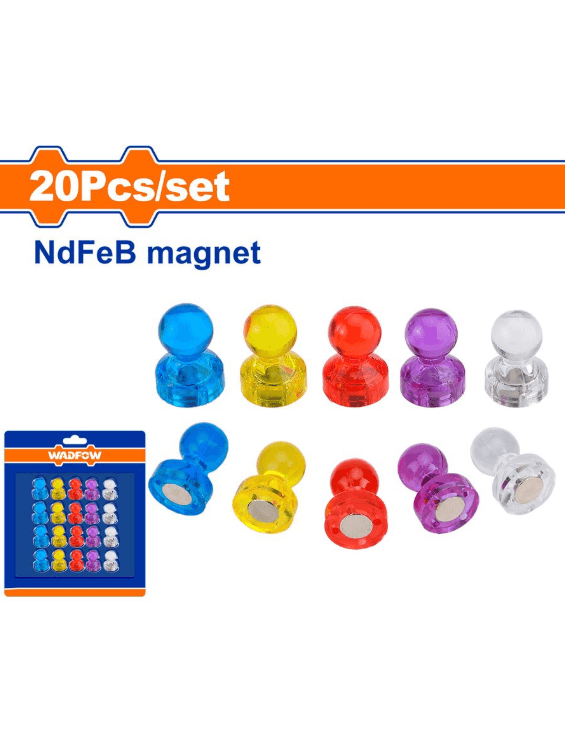 20 sany dürli reňkli kartalar üçin magnitli nyşanlar Öte güýçli neodim (NdFeB) magnitleri Ölçegi: diametri 11x17 mm Blister gaplamada gaplanan