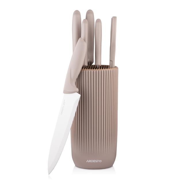 Ardesto AR2107KH pyçaklar toplumy — bu aşhananyňyz üçin professional hili we nepis dizaýny utgaşdyrýan ýokary derejeli goşundy we kömekçidir. Toplum ýokary hilli poslamaýan polatdan ýasalan dürli maksatly bäş sany pyçakdan we sypaýy podstawkadan ybaratdyr. Haky reňki topluma üýtgeşik döwrebap görnüş berip, ony islendik aşhananyň interýerinde tapawutlandyrýar. Tehniki aýratynlyklary we aýratynlyklary: Pyçaklaryň materialy: 3CR13 kysymly poslamaýan polat. Ýitiligiň, berkligiň we aňsat ýitilenmegiň arasynda kämil deňagramlylygy üpjün edýär. Toplumyň düzümi: Aşpez pyçagy (20.3 sm) — köp sanly işler üçin esasy gural. Çörek pyçagy (20.3 sm) — gaty gabygy bolan çörekleri aňsat kesýär. Dograýjy pyçak (20.3 sm) — tekiz dilimler üçin ideal. Uniwersal pyçak (12.7 sm) — ownuk dogramak we arassalamak üçin. Gök önüm pyçagy (8.9 sm) — miweler we gök önümler bilen inçe işlemek üçin. Tutawaçlary: Ezilen elden taýmazlygy üpjün edýän Haky|Haky reňkli, mat örtükli we ýylylyga durnukly plastikden ýasalan. Podstawka: Pyçaklaryň biri-birine degmeginiň we zeper ýetmeginiň öňüni alýan berk saklaýjy blok. Idegi: Pyçaklaryň uzak möhletleýin hyzmat etmegi üçin olary elde ýuwmak we ulanandan soň gowy guratmak maslahat berilýär. Dizaýny: Aşhananyňyzyň özboluşlylygyny görkezýän üýtgeşik Haky|Haky reňki.