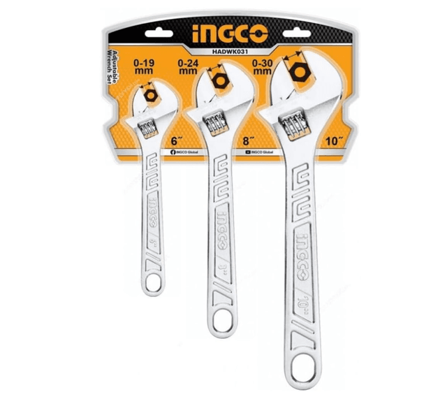 Sazlanyp bilinýän (razwodnyý) açarlar toplumy 3 sany Uzynlygy: 150 mm (6 dýuým) / 200 mm (8 dýuým) / 250 mm (10 dýuým) Gysyş ölçeginiň sazlanmasy: 6 dýuým 0–19 mm / 8 dýuým 0–24 mm / 10 dýuým 0–30 mm Materialy: uglerodly polat Taplanan (kowanyý) Ýarym-goşa blisterde gaplanan